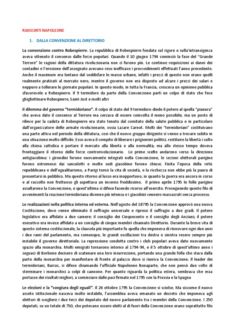 RIASSUNTI NAPOLEONE 1. DALLA CONVENZIONE AL DIRETTORIO La convenzione contro Robespierre.