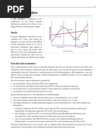 incompleta o tanto forte da portare a una nuova espansione. La prosperit pu implicare un lungo periodo sostenuto di vivace domanda, posti di lavoro in abbondanza e tenore di vite in aumento, oppure pu essere segnata da una fiammata inflazionistica, che sar seguita da un'altra crisi. Un ciclo economico lincontro del prodotto nazionale, del reddito e dell'occupazione, che di solito dura per un periodo variabile dai due ai dieci anni, segnato da una diffusa espansione o contrazione nella maggior parte dei settori dell'economia. Di solito gli economisti suddividono i cicli economici in due fasi principali, la recessione e l'espansione, i massimi ed i minimi segnano i punti di svolta dei cicli. La fase decrescente di un ciclo economico viene detta recessione, che un periodo ricorrente di diminuzione del prodotto totale, del reddito e dell'occupazione ed segnata da una diffusa contrazione di molti settori dell'economia. La depressione una recessione su scala pi ampia sia per entit che per durata. Quelle che seguono sono alcune caratteristiche tipiche di una recessione: Spesso gli acquisti da parte dei consumatori diminuiscono rapidamente, mentre le scorte di automobili e altri beni durevoli delle imprese aumentano inaspettatamente. Le aziende reagiscono limitando la produzione e il Pil reale cala; poco dopo anche gli investimenti delle imprese in impianti e attrezzature diminuiscono rapidamente. La domanda di manodopera cala: ci si nota innanzitutto nella riduzione della settimana lavorativa media, seguita da licenziamenti e da una disoccupazione pi elevata. Mentre il prodotto diminuisce, l'inflazione rallenta, e mentre la domanda di materie prime scende, i prezzi crollano. improbabile che i salari e i prezzi dei servizi calino, ma nelle fasi decrescenti tendono ad aumentare meno rapidamente. I profitti delle imprese scendono rapidamente durante le recessioni e, in previsione, i prezzi delle azioni ordinarie di solito calano, poich gli investitori hanno sentore di una fase decrescente degli affari, ma siccome la domanda di crediti scende, durante le recessioni anche i tassi d'interesse in genere diminuiscono. Le teorie esogene individuano l'origine del ciclo economico nelle fluttuazioni di fattori al di fuori del sistema economico: nelle guerre, nelle rivoluzioni e nelle elezioni politiche; nei prezzi del petrolio, nella scoperta di giacimenti d'oro e nelle migrazioni. Le teorie endogene, invece, cercano di individuare all'interno del sistema economico stesso i meccanismi che creano i cicli economici. Secondo questo approccio qualsiasi espansione determina la recessione, e ogni contrazione genera la ripresa e l'espansione. Un esempio rilevante quello della teoria del moltiplicatore acceleratore. Secondo il principio dell'acceleratore, la rapida crescita del prodotto stimola gli investimenti, che a loro volta favoriscono una maggiore crescita del prodotto; il processo continua fino a quando si raggiunge la capacit produttiva dell'economia e a quel punto il tasso di crescita economica rallenta. A sua volta la crescita pi lenta riduce la spesa per investimenti e le scorte si accumulano tendendo a indurre una recessione dell'economia. Una fonte importante di oscillazioni economiche dato dalla crisi della domanda aggregata, che si verifica quando i consumatori, le imprese o i governi modificano la spesa totale rispetto alla capacit produttiva dell'economia. Quando queste variazioni della domanda aggregata determinano brusche contrazioni l'economia attraversa periodi di recessione o persino di depressione. Una brusca espansione dell'attivit economica pu portare invece l'inflazione. Gli economisti hanno elaborato strumenti di previsione in grado di anticipare le variazioni dell'economia. Per uno sguardo pi accurato nel futuro gli economisti si rivolgono a modelli computerizzati di previsione economica. Un modello econometrico un insieme di equazioni che rappresentano il comportamento dell'economia stimato utilizzando dati storici. Come si possono costruire modelli computerizzati dell'economia? In genere gli elaboratori di modelli partono da una struttura analitica contenente equazioni che rappresentano sia la domanda sia l'offerta aggregata; sfruttando le tecniche della moderna econometria, ciascuna equazione viene adeguata ai dati storici per ottenere stime dei parametri. Infine l'intero modello viene elaborato e fatto girare sotto forma di sistema di equazioni. I modelli pi piccoli contengono 10 20 equazioni, mentre oggi i grandi sistemi effettuano previsioni in base a un numero di variabili che va da qualche centinaio a 10.000.