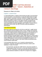 Supponiamo che il reddito giornaliero del consumatore sia dimezzato e che i due prezzi rimangono invariati. La retta ha subito uno spostamento parallelo verso l'interno. Supponiamo ora che il reddito giornaliero ammonti a sei euro, ma che il prezzo dei generi alimentari aumenti da 1,50 a 3 euro, mentre quello del vestiario rimane invariato. Anche in questo caso la retta di bilancio subisce una variazione: questo provoca una rotazione della retta di bilancio. CAPITOLO VI: Produzione e organizzazione delle imprese (pag. 109 123) Teoria della produzione e prodotti marginali Un'economia moderna prevede una vasta gamma di attivit produttive. La trattazione presuppone che l'azienda si sforzi di produrre in modo efficiente, ossia al minor costo possibile; essa cerca cio di produrre sempre il livello massimo di output per una data quantit di input, evitando, dove possibile, qualsiasi spreco. In un secondo tempo presupporremo che, nel decidere quali beni o servizi produrre e vendere, le imprese tentino anche di massimizzare i profitti. La relazione tra la quantit di input necessaria e la quantit di output producibile definita "funzione di produzione". La funzione di produzione la relazione tra la quantit massima di output ottenibile e la quantit di input necessaria per ottenerla, ed definita per un determinato livello di conoscenze tecniche. A partire dalla funzione di produzione di un'impresa possibile calcolare tre importanti concetti relativi alla produzione: il prodotto totale, il prodotto medio e quello marginale. Il prodotto totale fisico, o prodotto totale, indica la quantit totale di output prodotto in unit fisiche. Il prodotto marginale di un input prodotto il aggiuntivo, o output aggiunto da ununit addizionale di quel tipo di input, mentre tutti gli altri input sono mantenuti costanti. Infine, il prodotto medio quello che misura loutput totale diviso per le unit totali di input. Unit di lavoro 0 1 2 3 4 5 Prodotto totale 0 2000 3000 3500 3800 3900 Prodotto marginale 2000 1000 500 300 100 Prodotto medio 2000 1500 1167 950 780