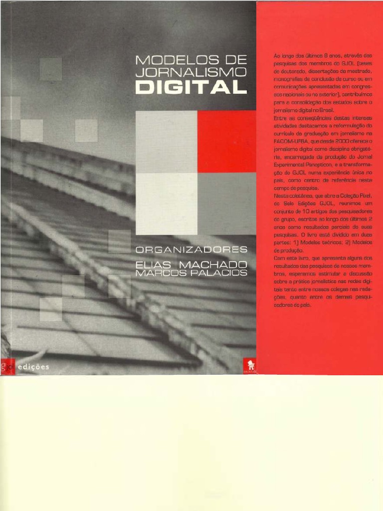 Edição digitalizada do livro "Modelos de Jornalismo Digital" (2003). A obra foi digitalizado por um dos co-autores, Marcos Palacios, e disponibilizada gratuitamente na Internet em 2012.