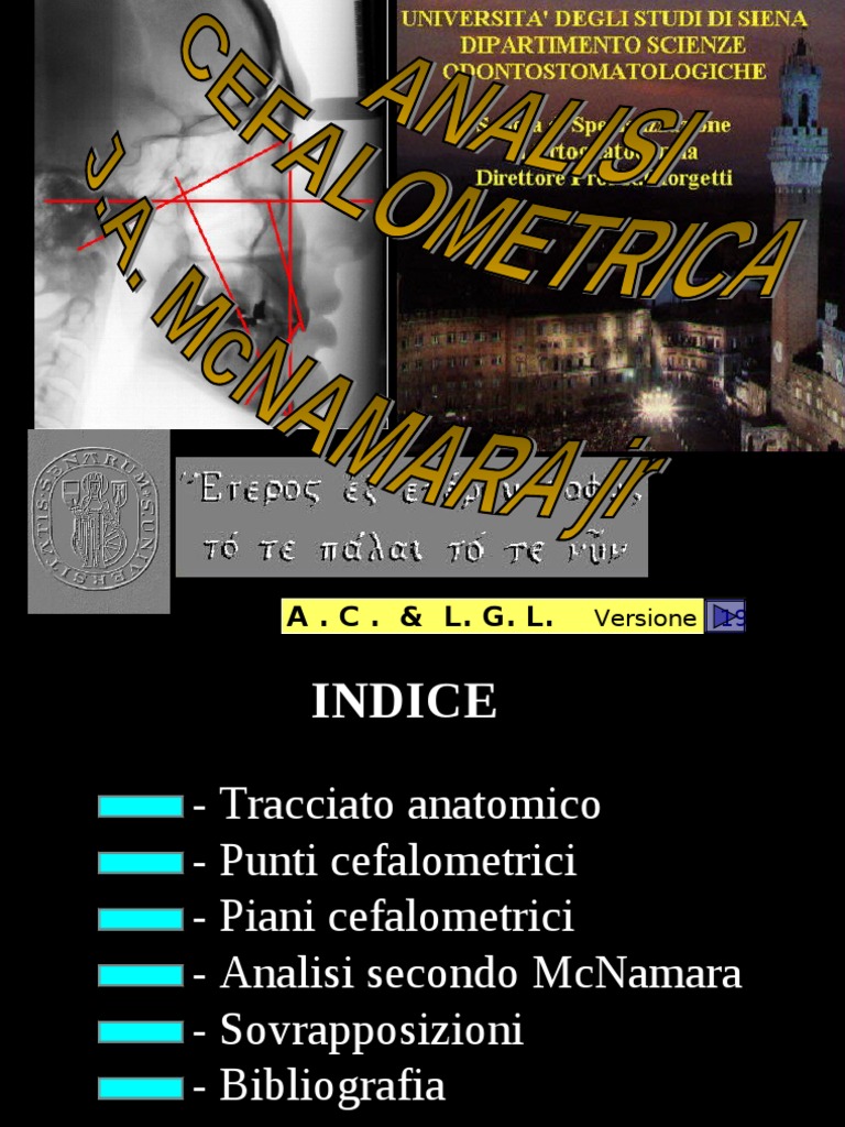 - Tracciato anatomico - Punti cefalometrici - Piani cefalometrici - Analisi secondo McNamara - Sovrapposizioni - Bibliografia