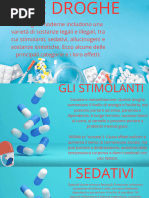 Il principale componente dei funghi allucinogeni appartenenti al genere Trichocerues la mescalina. Sebbene il meccanismo dazione della mescalina non sia stato ancora del tutto chiarito, sembra che gli effetti allucinogeni e comportamentali indotti dalla sostanza siano dovuti alla stimolazione, a livello del sistema nervo centrale, dei recettori serotoninergici e dopaminergici (4). Recentemente stato osservato che la mescalina (analogamente ad altri allucinogeni) agisce da agonista parziale dei recettori 5-HT2A per la serotonina, la stimolazione dei quali determina un maggiore rilascio di glutammato a livello della corteccia cerebrale che, a sua volta, sembra essere responsabile delle distorsioni cognitive, percettive e affettive causate dal composto (5). Alla dose di 350 mg, i primi effetti della mescalina si manifestano dopo circa 30 minuti dallassunzione con nausea e vomito occasionalmente accompagnati da diarrea. Durante questa fase possibile inoltre osservare tachicardia, palpitazioni, aumento della pressione arteriosa, respiro affannoso, midriasi e visione offuscata. Successivamente, dopo unora dallassunzione, si palesano effetti di tipo psicotomimetico che si manifestano con allucinazioni visive e uditive, ansia, alterazioni della percezione sensoriale, tattile e spazio-temporale. Vengono riportati soprattutto fenomeni legati ad alterazioni visive quali luccichii, intensificazione della percezione dei colori, sinestesie cio la capacit di percepire uno stimolo con una reazione propria di un altro senso (per es. la capacit di odorare i colori) e visione di immagini dalle forme ondulate. A livello sensoriale lindividuo manifesta una forte empatia nei confronti di oggetti inanimati o degli esseri viventi (6).
