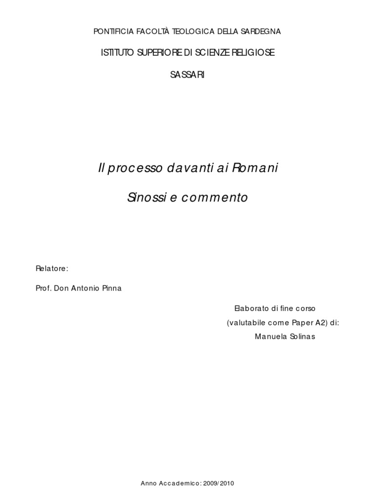 Relatore: Prof. Don Antonio Pinna Elaborato di fine corso (valutabile come Paper A2) di: Manuela Solinas