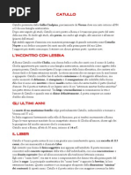 A Roma (non sappiamo quando vi giunse) Catullo conobbe e frequent personaggi di spicco dellambiente politico e letterario ed ebbe una relazione damore con Clodia (la Lesbia dei suoi versi), quasi certamente la sorella mediana del tribuno P. Clodio Fulcro e moglie di Q. Cecilio Metello, console nel 60. Probabilmente nel 57 and in Bitinia, per un anno, come membro dellentourage del governatore Gaio Memmio; in occasione di questo viaggio visit la tomba del fratello, morto e sepolto nella Troade (si veda il famoso carme 101). Mor intorno ai 30 anni. Di Catullo abbiamo 116 carmi (per un totale di quasi 2300 versi) raccolti in un liber che si suole suddividere sommariamente, su base metrica, in tre sezioni. 1) Il primo gruppo (1-60) costituito da componimenti generalmente brevi e di carattere leggero (noti anche come nugae: bagatelle, passatempi), di metro vario, soprattutto endecasillabi faleci ma anche trimetri giambici, scazonti, saffiche (sono perci chiamati polimetri; non vi compare comunque il distico elegiaco). 2) Il secondo gruppo (61-68), assai eterogeneo, abbraccia un numero di carmi limitato, ma di maggiore estensione e impegno stilistico (vari i metri, dal raro galliambo, a gliconei e ferecratei, esametri e pentametri): sono i cosiddetti carmina docta. 3) La terza sezione (69-116) comprende carmi generalmente brevi in distici elegiaci, i cosiddetti epigrammi. I carmi brevi II nome e la poesia di Catullo sono tradizionalmente associati alla rivoluzione neoterica; ne sono anzi il documento pi importante. Rivoluzione del gusto letterario ma - come si detto - anche rivolta di carattere etico: mentre si sgretolano, nellet di crisi acuta della repubblica, gli antichi valori morali e politici della civitas, Lotium individuale diventa lalternativa seducente alla vita collettiva, lo spazio in cui dedicarsi alla cultura, alla poesia, alle amicizie, allamore. Il piccolo universo privato, con le sue gioie e i suoi drammi, si identifica con lorizzonte stesso dellesistenza, e lattivit letteraria non si rivolge pi allepos o alla tragedia, i generi portavoce della civitas e dei suoi valori, bens alla lirica, alla poesia individuale, introversa, adatta ad accogliere ed esprimere le piccole vicende della vita personale. A questo progetto di recupero della dimensione intima, dei sentimenti privati, risponde in modo pi evidente quella parte della produzione poetica di Catullo che si suole indicare come carmi brevi, cio linsieme dei polimetri e degli epigrammi, in cui lesiguit dellestensione rivela gi in se stessa la modestia dei contenuti, occasioni e avvenimenti della vita quotidiana, e favorisce insieme il paziente lavoro di cesello, la ricerca della perfezione formale. Affetti, amicizie, odi, passioni, aspetti minori o minimi dellesistenza, sono loggetto della poesia di Catullo. Ne risulta unimpressione di immediatezza, di vita riflessa, che ha dato luogo, nella storia della critica, a un equivoco tenace, quello di una poesia ingenua e spontanea, e di un poeta fanciullo che da libero sfogo ai suoi sentimenti, senza i vincoli della morale e i filtri della cultura. In realt, la celebrata spontaneit catulliana la veste