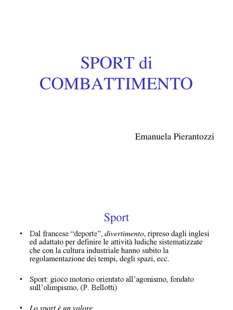 E la definizione che oggi si da a quelle arti marziali che si sono disciplinate con regole molto precise per rendere possibile la competizione sportiva e la partecipazione ad eventi istituzionali come i Giochi Olimpici Le regole servono soprattutto a permettere il confronto tutelando i partecipanti Gli sport di combattimento sono un gruppo molto eterogeneo