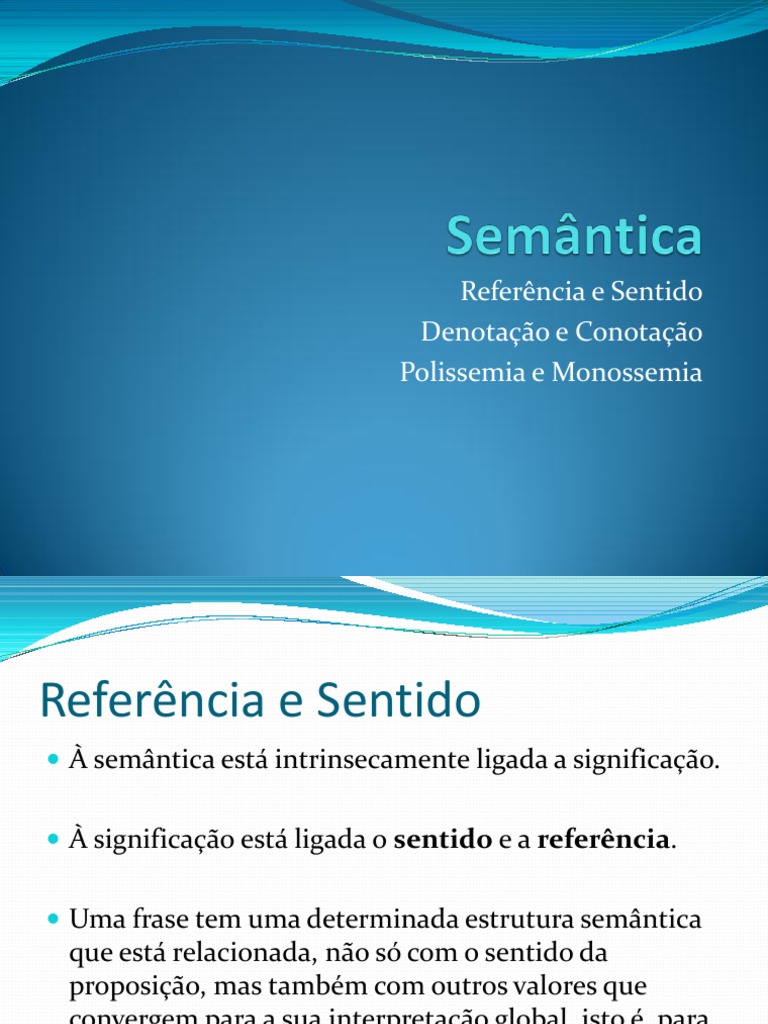 Referência e Sentido Denotação e Conotação Polissemia e Monossemia