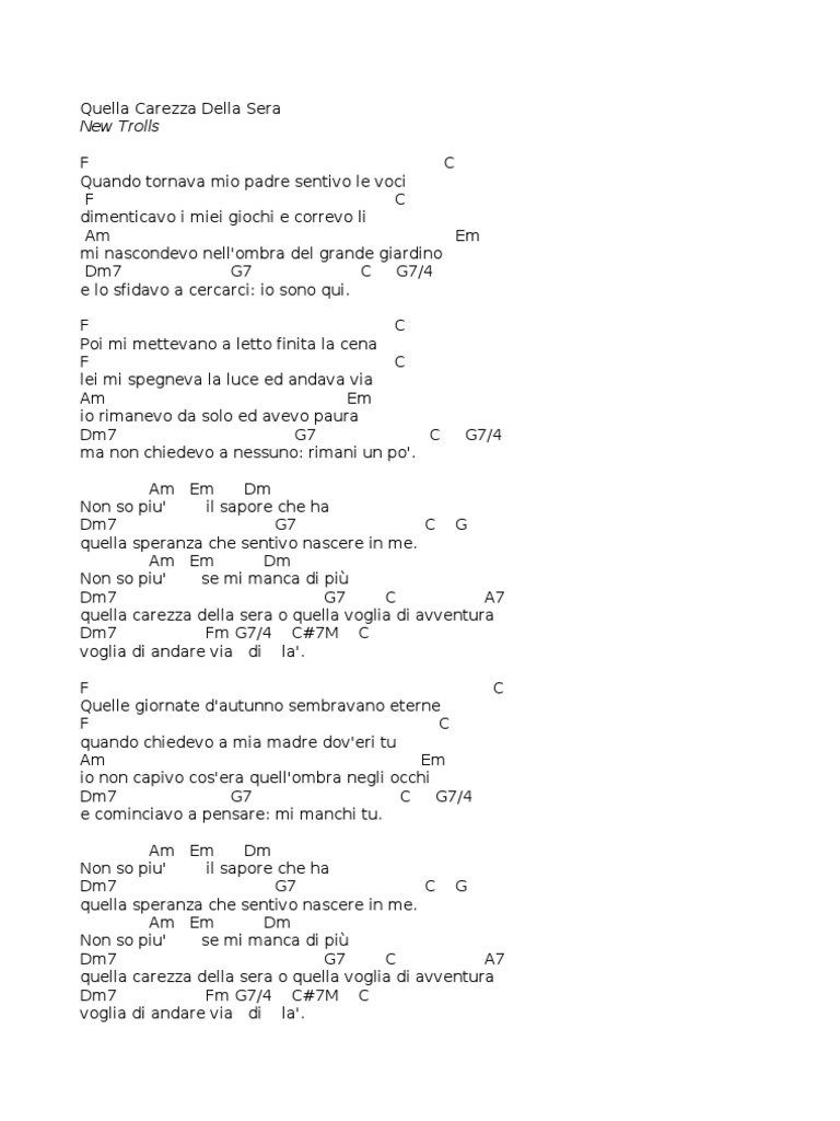 Quella Carezza Della Sera New Trolls F C Quando tornava mio padre sentivo le voci F C dimenticavo i miei giochi