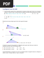 1 criterio: i due triangoli sono congruenti se hanno congruenti due lati e langolo compreso a=a; b=b; = 2 criterio: i due triangoli sono congruenti se hanno congruenti un lato e i due angoli a esso adiacenti =; =; c=c 3 criterio: i due triangoli sono congruenti se hanno congruenti rispettivamente i tre lati a=a; b=b; c=c Criteri di congruenza dei triangoli rettangoli Due triangoli rettangoli sono congruenti se hanno ordinatamente congruenti: due cateti; un cateto e un angolo acuto; lipotenusa e un angolo acuto; lipotenusa e un cateto. Propriet di angoli e lati di un triangolo In un triangolo ogni angolo esterno maggiore di ciascuno degli angoli interni ad esso non adiacenti. In un triangolo un angolo esterno congruente alla somma dei due angoli interni a esso non adiacenti. = + In un triangolo la somma degli angoli interni un angolo piatto. In un triangolo la somma degli angoli esterni vale 360. In un triangolo con due lati disuguali, a lato maggiore opposto angolo maggiore. In un triangolo con due angoli disuguali, allangolo maggiore opposto il lato maggiore. In un triangolo ciascun lato minore della somma degli altri due e maggiore della loro differenza.