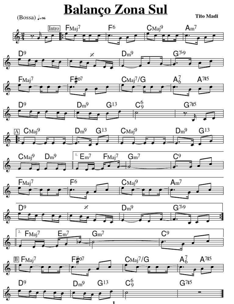 Il documento contiene le note musicali per una canzone bossa nova. Le note sono organizzate in sezioni che compongono la struttura musicale della canzone.