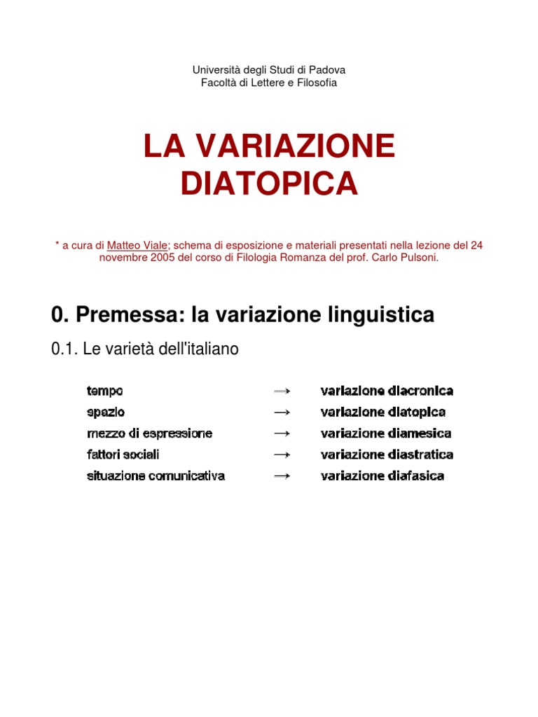 Bonomi et alii, 2005 = Ilaria Bonomi, Andrea Masini, Silvia Morgana, Mario Piotti, Elementi di linguistica italiana, Roma, Carocci, 2005 (in particolare i paragrafi 1.1. e 1.2.). Grassi et alii, 1998 = Corrado Grassi, Alberto A. Sobrero, Tullio Telmon, Fondamenti di dialettologia, Bari, Laterza, 1998 (2 ed.). Poggi Salani, 1990 = Teresa Poggi Salani, Per lo studio dell'italiano. Avviamento storico descrittivo, Padova, Liviana, 1990 (2. ed.) (in particolare il capitolo 1 con relative letture).