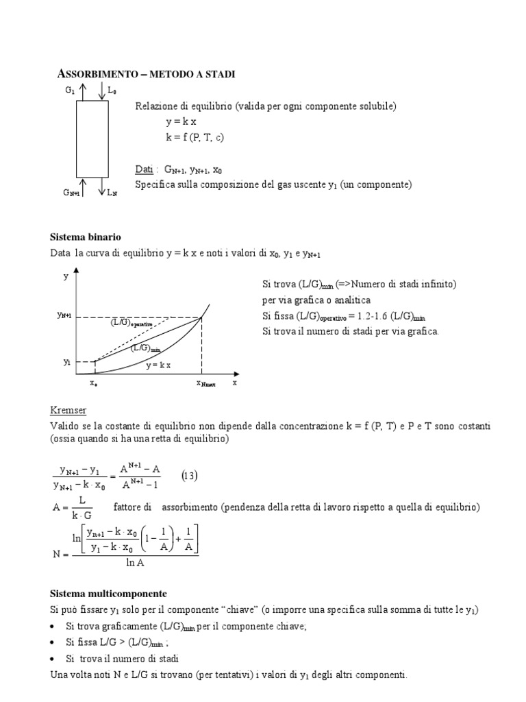 Va rimarcato che L/G =(L/G)min quando N , condizione che si verifica per il componente chiave quando AE= . Nelle fasi iniziali del calcolo, in cui non sono ancora note le portate GN e L1 si possono utilizzare i valori di GN+1 e L0. Nel caso di assorbimento multicomponente spesso si preferisce iniziare il calcolo con il metodo di Edminster e fare la verifica finale con Horton-Franklin.