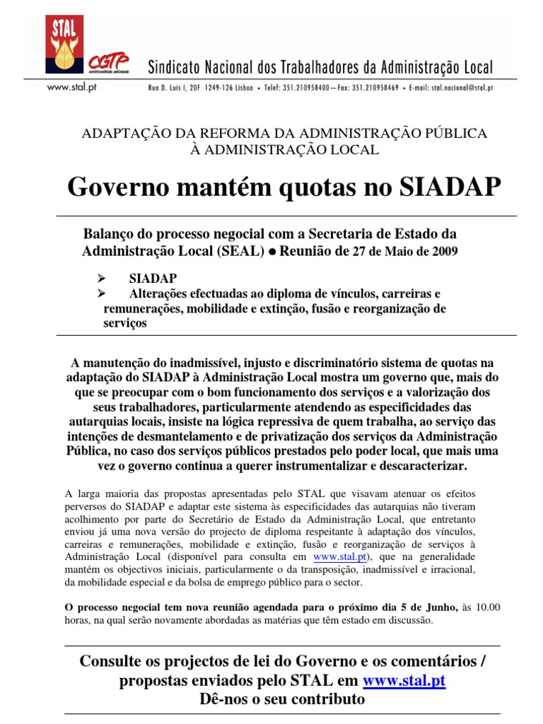 Administração Local (disponível para consulta em www.stal.pt), que na generalidade