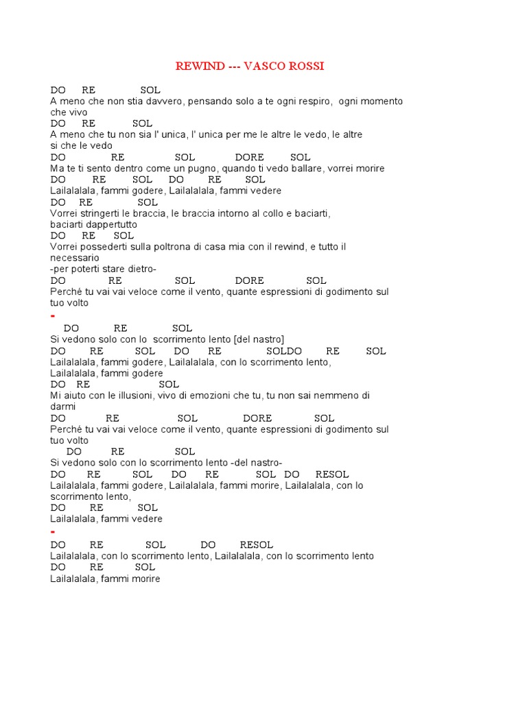 DO RE SOL A meno che non stia davvero, pensando solo a te ogni respiro, ogni momento che vivo DO RE SOL A meno che tu non sia l' unica, l' unica per me le altre le vedo, le altre si che le vedo DO RE SOL DORE SOL Ma te ti sento dentro come un pugno, quando ti vedo ballare, vorrei morire DO RE SOL DO RE SOL Lailalalala, fammi godere, Lailalalala, fammi vedere DO RE SOL Vorrei stringerti le braccia, le braccia intorno al collo e baciarti, baciarti dappertutto DO RE SOL Vorrei possederti sulla poltrona di casa mia con il rewind, e tutto il necessario -per poterti stare dietroDO RE SOL DORE SOL Perch tu vai vai veloce come il vento, quante espressioni di godimento sul tuo volto
