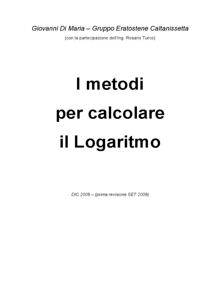 I metodi per calcolare il Logaritmo Giovanni Di Maria