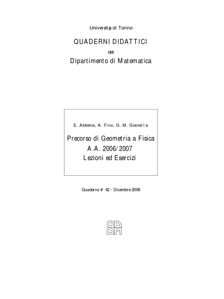 154 E. Abbena, A.M. Fino, G.M. Gianella Precorso di Geometria
