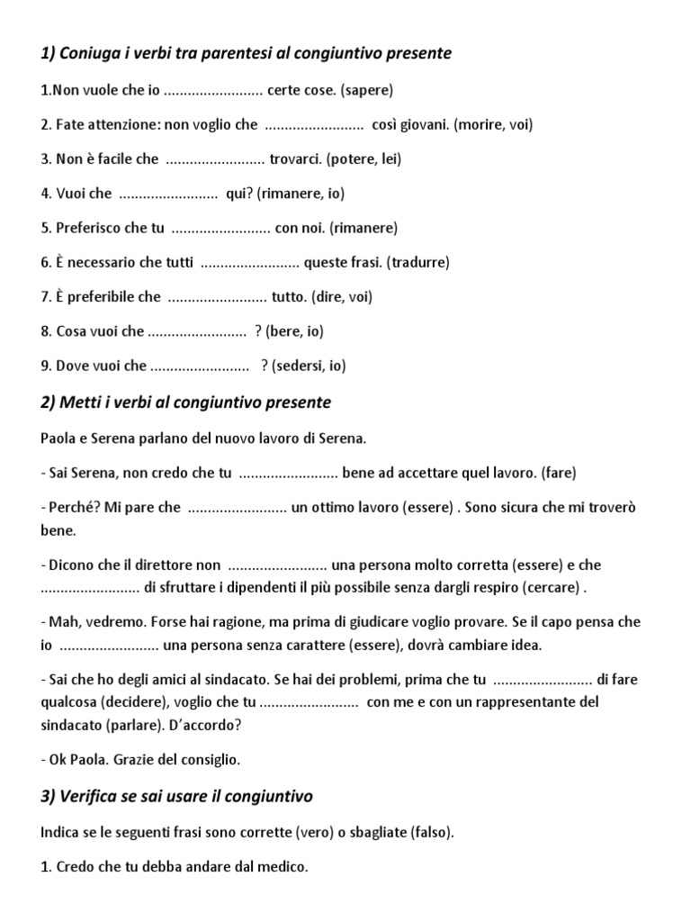 1)Coniugaiverbitraparentesialcongiuntivopresente