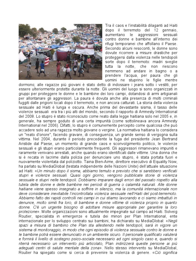 Haiti: crescono le violenze sessuali contro le donne nelle tendopoli La Stampa