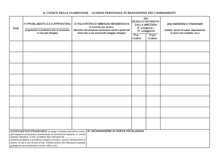 IL CODICE DELLA GUARIGIONE - SCHEDA PERSONALE DI RILEVAZIONE DEI CAMBIAMENTI
