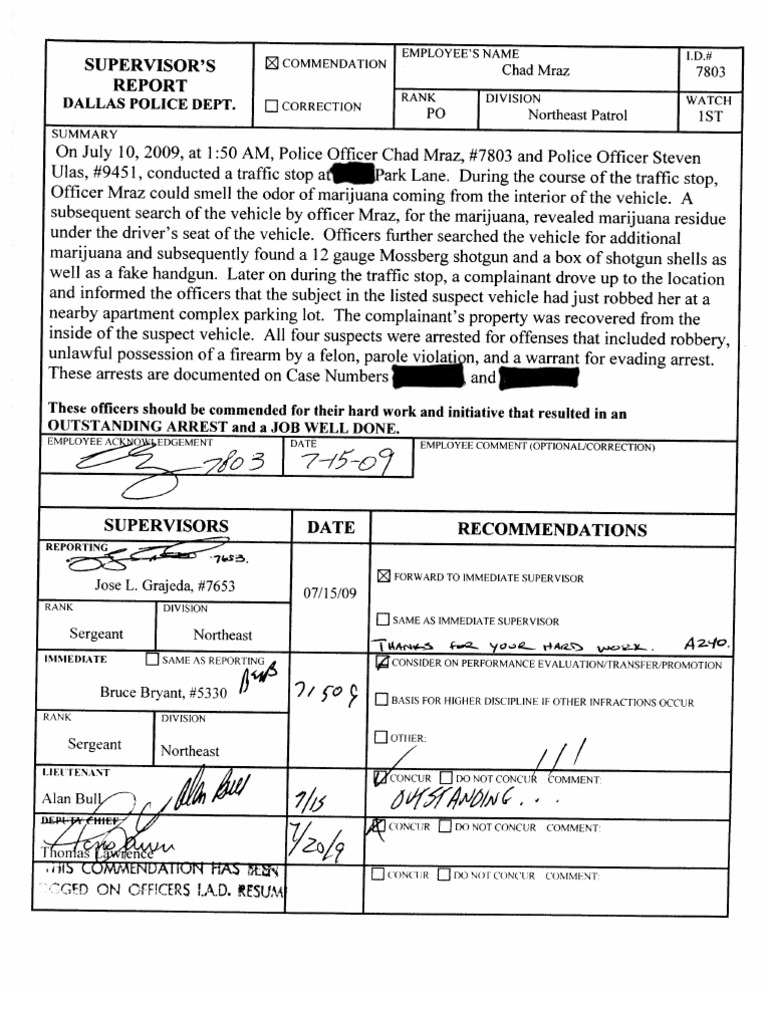 SUPERVISOR’S COMMENDATION ‘Chad Mraz, 7803
