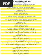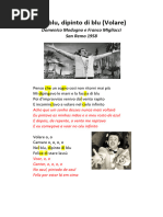 C Dm Pienso que un sueno parecido no volvera mas G7 C Y me pintaba las manos y la cara de azul _____ Em Dm Y me improviso el viento rapido me llevo Dm ___ G7 Y me hizo a volar en el cielo infinito Dm G7 Volare, oh oh C ____ Cantare, oh oh oh oh Dm G7 C Nel blu dipinto di blu Dm G7 C Felice di stare lassu ____ Y volando, volando feliz Em Yo me encuentro mas alto Em Mas alto que el sol _____ Y mientras que el mundo _____ Se aleja despacio de mi _____ Una musica dulce _____ ____ __ Se ha tocada solo para mi Volare, oh oh Cantare, oh oh oh oh Nel blu dipinto di blu Felice di stare lassu Pienso que un sueno parecido no volvera mas Y me pintaba las manos y la cara de azul Y me improviso el viento rapido me llevo Y me hizo a volar en el cielo infinito Volare, oh oh Cantare, oh oh oh oh Nel blu dipinto di blu Felice di stare lassu Volare, oh oh Cantare, oh oh oh oh Nel blu dipinto di blu Felice di stare lassu Pienso que un sueno parecido no volvera mas Y me pintaba las manos y la cara de azul Y me improviso el viento rapido me llevo Y me hizo a volar en el cielo infinito Volare, oh oh Cantare, oh oh oh oh Nel blu dipinto di blu Felice di stare lassu Volare, oh oh Cantare, oh oh oh oh Nel blu dipinto di blu Felice di stare lassu