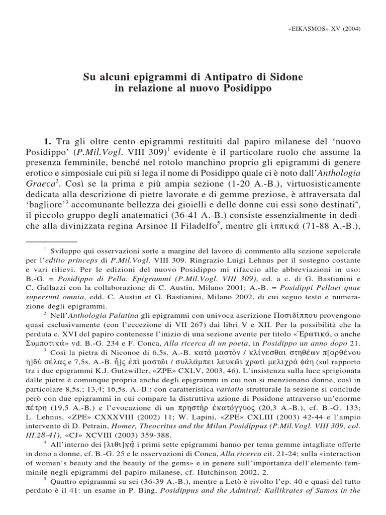 1. Tra gli oltre cento epigrammi restituiti dal papiro milanese del nuovo
