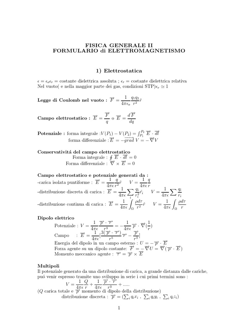 FISICA GENERALE II FORMULARIO di ELETTROMAGNETISMO