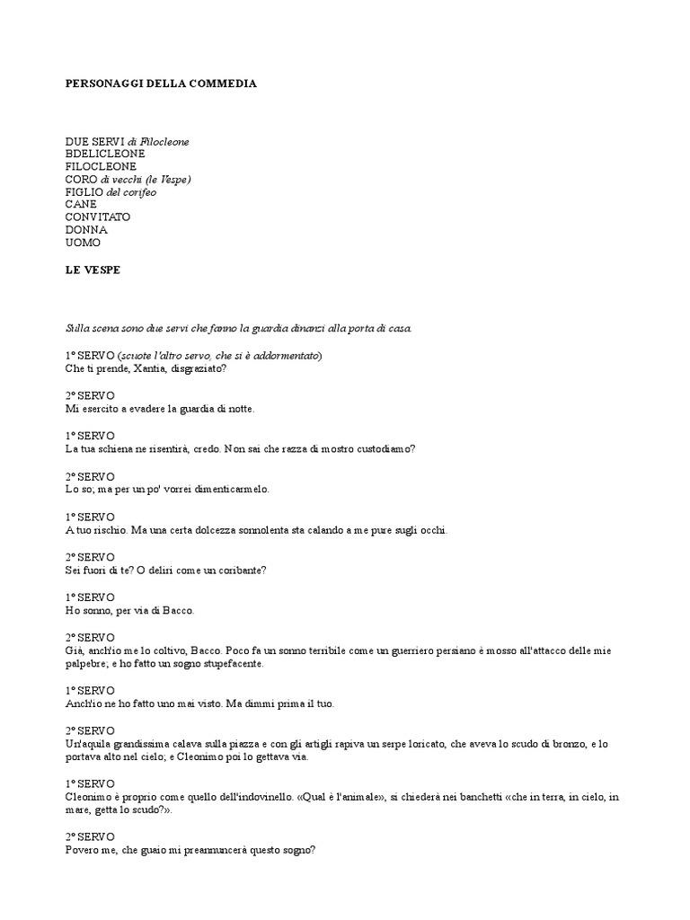 montiamo la guardia. Il vecchio si chiama Filocleone, il figlio Bdelicleone: ed persona dai modi bruschi e superbi.
