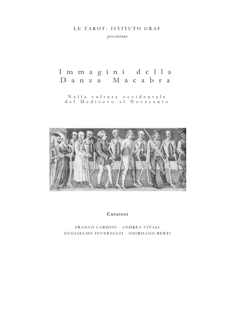 Costante di ogni rappresentazione riguardante la Danza Macabra lanimato svolgersi di un ballo a cui partecipano esponenti di ogni classe sociale nellinquietante compagnia di un deputato della Morte. Tale tema, che fu in pi riprese e in pi luoghi rappresentato sulle pareti di chiese, chiostri e monasteri, prese forma e si svilupp tra i secoli XIV e XVI principalmente a seguito dellinesorabile contatto con la morte derivante da calamit, guerre e epidemie che lasciavano sgomente e impotenti intere popolazioni del Continente. La Danza Macabra trova origine proprio nella riflessione su una tangibile ed egualitaria caducit della vita. Essa si anim anche in drammatici cortei, fu affrescata e incisa. I percorsi cittadini, i palazzi regali, le volte sacre, le pagine dei libri la propagarono e la resero popolare presso ogni ceto. La chiesa ne diffuse le immagini con laiuto della stampa per incitare i fedeli alla riflessione. Un prezioso patrimonio di opere grafiche sopravvissuto nei secoli a testimoniare la notoriet ottenuta dalla danza dei morti. Celebri editori come il francese Guyot Marchand (fine Quattrocento), artisti come Hans Holbein il giovane e il pittore di Enrico VIII, incisori come Wenceslaus Hollar, solo per citarne alcuni, ci hanno lasciato xilografie e acqueforti di altissimo pregio che testimoniano la centralit della morte in ambienti ecclesiastici, laici e di corte. Le numerosissime stampe, che vengono esposte con questa mostra unite ad un accurato apparato didascalico, documentano analiticamente nella sua ricchezza e variet levoluzione del tema nel succedersi dei secoli, mostrandone anche le diverse caratteristiche in dipendenza degli ambienti culturali di provenienza. Lesposizione curata dal Prof. Franco Cardini, ordinario di Storia Medievale presso lUniversit di Firenze, dalliconologo Andrea Vitali e da Guglielmo Invernizzi, ordinatore della Collezione. Inoltre lesposizione vanta il contributo storico-scientifico dellAssociazione Le Tarot e dell Istituto Graf, ed corredata da un volume edito da Nodolibri, (di cui sar possibile attuare una versione in lingua inglese, francese, tedesca o altra) con contributi di esimi medievisti come il Prof. Alberto Tenenti, gi docente allEcole des Hautes tudes en Sciences di Parigi.