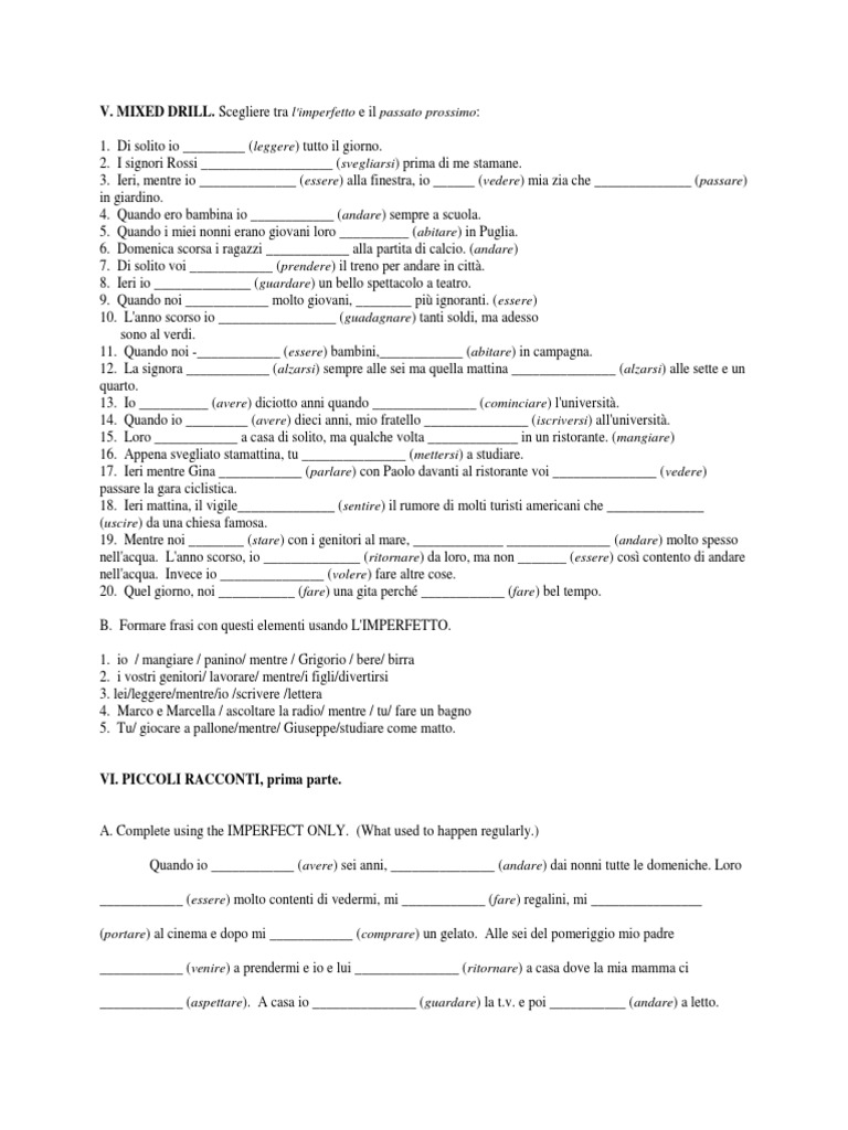 Racconti, seconda parte. Complete using either tense.