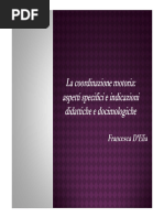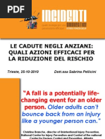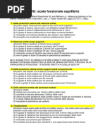 1. Equilibrio da seduto Si inclina, scivola dalla sedia E stabile, sicuro 2. Alzarsi dalla sedia E incapace senza aiuto Deve aiutarsi con le braccia Si alza senza aiutarsi con le braccia 3. Tentativo di alzarsi E incapace senza aiuto Capace, ma richiede pi di un tentativo Capace al primo tentativo 4. Equilibrio nella stazione eretta (primi 5 sec) Instabile (vacilla, muove i piedi, marcata oscillazione del tronco) Stabile grazie alluso di bastone o altri ausili Stabile senza ausili 5. Equilibrio nella stazione eretta prolungata Instabile (vacilla, muove i piedi, marcata oscillazione del tronco) Stabile, ma a base larga (i malleoli mediali distano >10 cm Stabile, a base stretta, senza supporti 6. Equilibrio ad occhi chiusi Instabile Stabile 7. Equilibrio dopo leggera spinta sullo sterno Comincia a cadere Oscilla, ma si riprende da solo Stabile 8. Girarsi di 360 gradi A passi discontinui A passi continui Instabile Stabile 9. Sedersi Insicuro (sbaglia la distanza, cade sulla sedia) Usa le braccia, o ha un movimento discontinuo Sicuro, movimento continuo Punteggio dellequilibrio 0 1 0 1 2 0 1 2