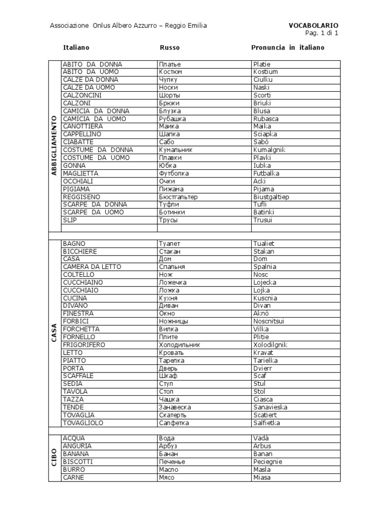 Associazione Onlus Albero Azzurro - Reggio Emilia VOCABOLARIO