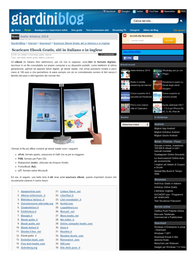 GiardiniBlog > internet > download > Scaricare Ebook Gratis, siti in italiano e in inglese