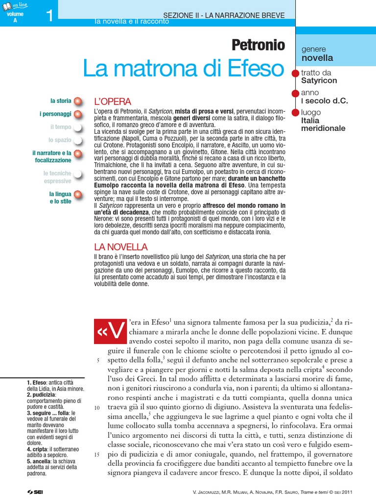 1. Righi 1-12 Una vedova dEfeso si chiude nella tomba del marito e rifiu-