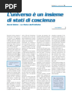 pubblicato Marco Todeschini Spaziodinamica e Psicobiofisica di M. Teodorani). Gli studi, le scoperte e le formulazioni teoriche di Todeschini si svilupparono nella prima met del 1900, fino ad arrivare alla pubblicazione del volume Psicobiofisica del 1978, in cui riassunse una vita di indagine scientifica anticonformista, in aperta polemica con le teorie fisiche dellortodossia scientifica, in particolare con limpostazione di Newton e di Einstein per quanto riguarda lassunzione di uno spazio vuoto. Le idee anticonformiste di Todeschini ebbero vasta eco sia nel mondo scientifico sia sulla stampa, in particolare negli anni 60 e 70, poi cadde il silenzio. Nel frattempo altri scienziati e studiosi, sia oltre cortina che oltre oceano cercavano teorie e risposte pi soddisfacenti allassunto della fisica ufficiale di uno spazio vuoto. che si curva e trasmette ogni sorta di radiazione. Si ricominci a parlare di etere - magari con altri nomi o giri di parole e poi di universo olografico, universo elettrico e universo plasmatico e cos via per costruire un modello pi consono alla realt e che considerasse, almeno per alcuni studiosi, anche la componente spirituale delluniverso, lelemento Coscienza, da sempre escluso a priori, perch ritenuto indimostrabile, dalla ricerca scientifica ortodossa e seria. Il punto di svolta fra la concezione meccanicistica delluniverso e questa nuova ondata di idee ed ipotesi si ebbe con la formulazione delle teorie della Fisica Quantistica, ultimamente prese da molti ricercatori spirituali (in molti casi, ho il sospetto, anche a sproposito) come elementi a sostegno delle loro idee innovative. Nellambito dellesame di tutte queste nuove idee merita a mio avviso di essere rivisitata lopera di M. Todeschini, in quanto precursore (per giunta italiano) di molte delle teorie pi recenti. Rileggendo oggi le righe di Psicobiofisica Scienza unitaria del creato ci simbatte in una persona di ampie vedute che, con il linguaggio proprio della Fisica, con una serie di dimostrazioni matematiche e concettuali perviene alla conclusione che accanto alluniverso materiale, oggettivo, deve esistere, come logica ed ineluttabile conseguenza, un altrettanto reale mondo spirituale, motore primo dellesistenza delluniverso fisico stesso. Bench la sua formazione religiosa lo porti, un po avventatamente, ad affermare, che la dimostrazione dellesistenza di una non meglio definita realt spirituale conduca, come conseguenza, alla completa validazione della concezione cristiana del mondo, Todeschini resta un uomo dalla mente estremamente aperta per il quale la ricerca scientifica della verit viene prima di ogni altra considerazione o credo. Bench nella sua opera non si parli esplicitamente n di energie sottili n di auree o di chakra, la sua teoria delluniverso non esclude affatto tutto questo, anzi Egli era attratto da tutto quanto appariva inspiegabile, fenomeno UFO compreso e sinteress molto allenergia emessa dai pranoterapisti, al punto di costruire degli apparecchi che la rilevassero! La visione delluniverso di Todeschini pu apparire alquanto meccanicistica, considerando qualunque fenomeno come il prodotto di etere o spazio fluido in