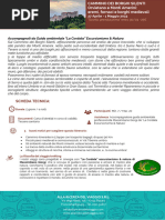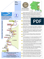 Pellegrinaggio sulla Via degli Abati 29 giugno 8 luglio 2013 29 giugno 2013 Firenze - Pavia Alle 9 partiamo in dieci per ilano con il Frecciarossa! Paola" #raziano" $uciano e la moglie $ucia" #uido e #iovanna" Vera e %arlo" &iziana e Paolo' A (ologna sale $ucia azzucco" mentre #iorgio arriver) a Pavia nel pomeriggio' *ul treno siamo distribuiti in varie carrozze" ma ogni tanto ci +acciamo visita l,un l,altro' -na signora anziana" c.e scopriremo essere albanese" sta sulle spine per tutto il viaggio temendo di sbagliare +ermata" ma #uido si d) da +are per rassicurarla con gesti e sorrisi' A ilano" in attesa della coincidenza" /ualcuno di noi va a caccia del 0rincarzino1 ovvero di una bella brioc.e con cappuccino" ma sar) una lotta dura perc.2 nei bar non c,3 niente di allettante' Alle 12 siamo a Pavia" la giornata 3 grigia' Alla stazione ci raggiunge ario (obba" un amico di #iovanna" c.e gentilmente ci +ar) da angelo custode per tutto il giorno' A turno ci porta in auto all,ostello dove lasciamo gli zaini e poi si o++re per il pomeriggio di accompagnare alla %ertosa di Pavia c.i non l,.a mai vista' 4nizia la tragedia americana! convinti di essere in 12 e dato c.e in tre restiamo a Pavia" viene +uori c.e ario dovrebbe +are 3 viaggi e ci scervelliamo per una buona mezzora a pensare come +are a evitare tutto /uesto trambusto' Finalmente ci si apre il cervello e realizziamo c.e #iorgio arriver) pi5 tardi" /uindi siamo in undici" perci6 i visitatori della %ertosa sono otto e con due viaggi la cosa 3 +atta7 8opo /uesto incredibile s+orzo matematico e organizzativo" decidiamo di andare a mangiare i nostri panini sul $ungo &icino accanto al monumento della lavandaia e casualmente ci imbattiamo in una coppia di sposi a+ricani circondati dai +amiliari vestiti a +esta! +ra di loro tre bambine deliziose' entre ario +a la spola per portare i nostri otto alla %ertosa" $ucia azzucco" #uido e #iovanna si recano alla [Link] di *an [Link] per ammirare il mosaico del labirinto" ma c,3 un matrimonio e occorre aspettare c.e la +unzione +inisca' 9el +rattempo [Link] alla custode di timbrare le credenziali" ma purtroppo il tampone non +unziona: poco male" $ucia prende il tampone e con gli altri va alla cartoleria di Andrea e Paola c.e" nonostante non abbiano il tampone giusto" si +anno in /uattro per metterci il timbro e cos; lo scopo 3 raggiunto' $ucia spiega /uello c.e stiamo +acendo e assicura i due c.e verranno menzionati nel diario di pellegrinaggio come nostri angeli del cammino' <rmai +uori dalla [Link] ci sono gli sposi sommersi da riso e stelle +ilanti" cos; possiamo entrare per visitarla' Arriva #iorgio e tornano gli altri dalla %ertosa' %e la +acciamo a visitare anc.e *an &eodoro" dove 3 possibile ammirare gli a++resc.i della vita del santo e +rammenti di mosaici romani recentemente riportati alla luce' 8urante la visita siamo stati allietati dal canto di un coro e dal suono dell,organo' Al tramonto 3 arrivato il sole e" dopo una breve visita al 8uomo" ci ritroviamo in pizzeria con ario e la moglie' $a tavolata si anima di racconti e di brindisi alla Via degli Abati e agli anniversari di matrimonio" =3 anni per #uido e #iovanna" =8 per &iziana e Paolo' %oncludiamo la serata per le viuzze del centro storico" con una passeggiata notturna senza zanzare c.e" a detta di ario e di sua moglie" 3 una vera rarit)' $i salutiamo ringraziandoli per l,accoglienza e ce ne andiamo a letto" perc.2 domani ci aspetta una tappa piuttosto lunga' 30 giugno 2013 Pavia onteveneroso