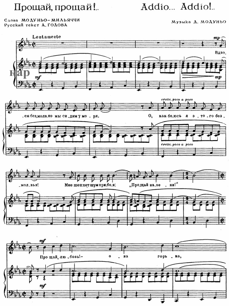 Domenico Modugno - Addio... Addio! Spartito per pianoforte