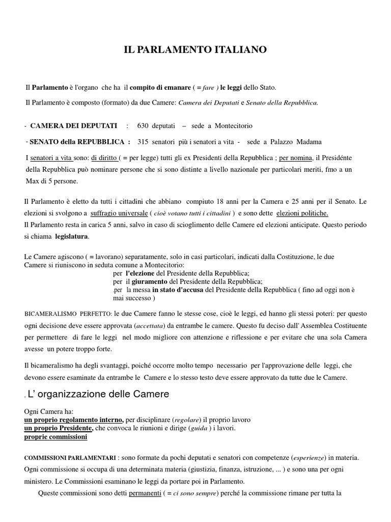 Il Parlamento composto (formato) da due Camere: Camera dei Deputati e Senato della Repubblica.