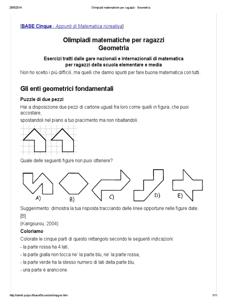 26/5/2014 Olimpiadi matematiche per ragazzi - Geometria