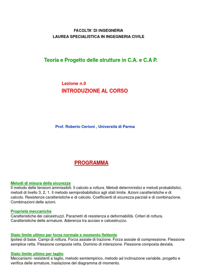 Teoria e Progetto delle strutture in C.A. e C.A P.