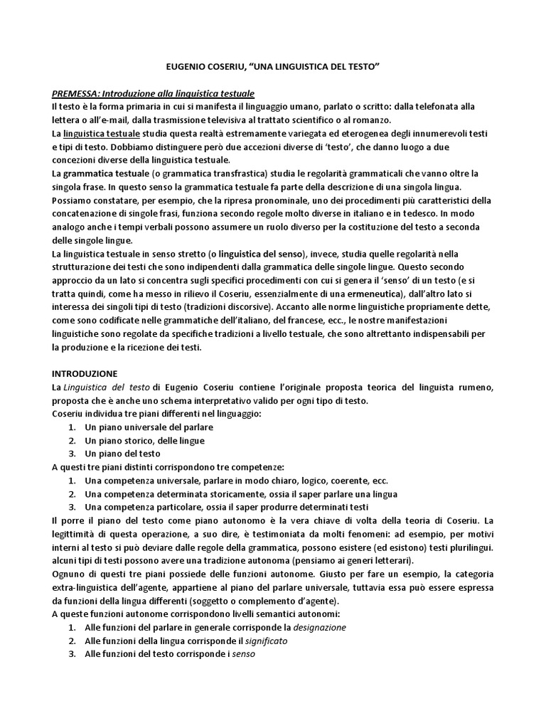 La Linguistica del testo di Eugenio Coseriu contiene loriginale proposta teorica del linguista rumeno,