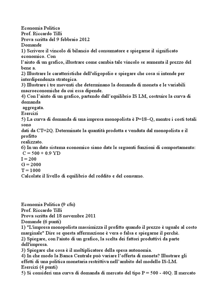 Economia Politica 9 cfu