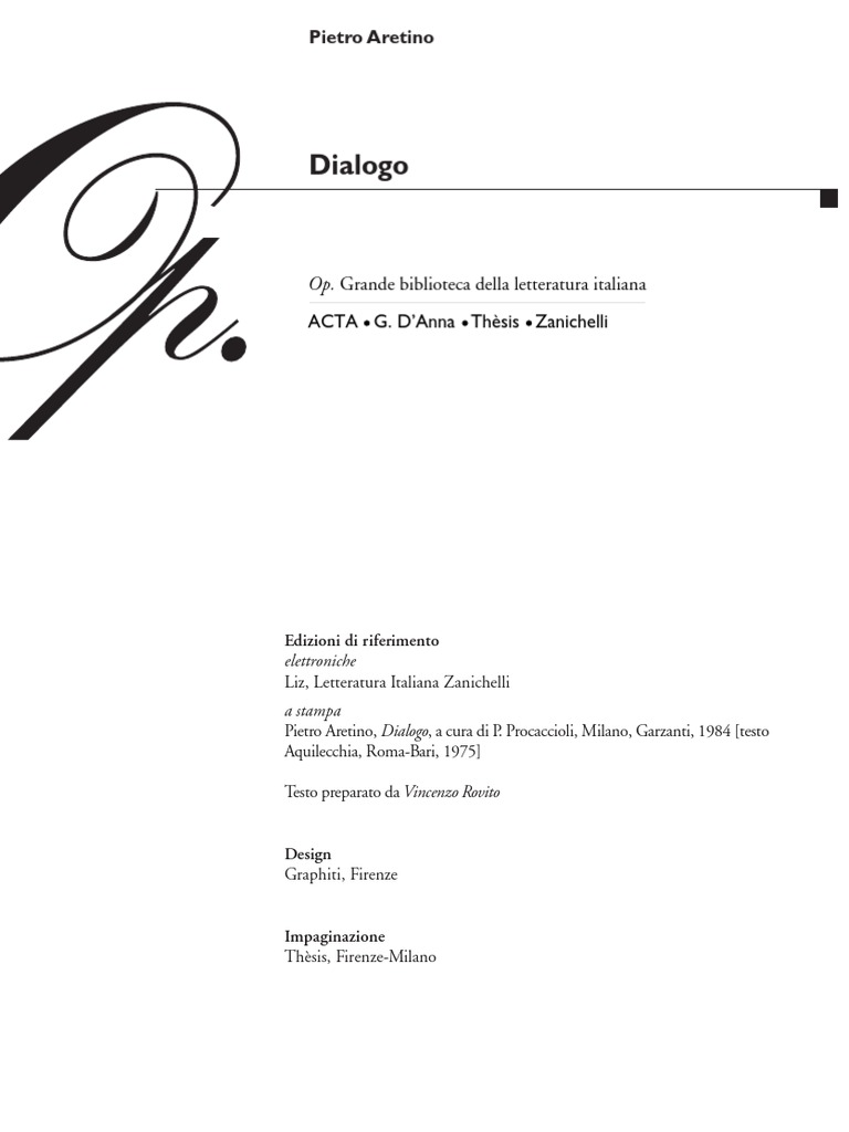 Pietro Aretino Dialogo Dedica