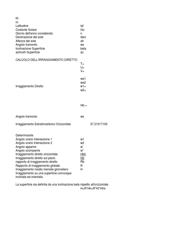 CALCOLO DELL'IRRAGGIAMENTO DIRETTO