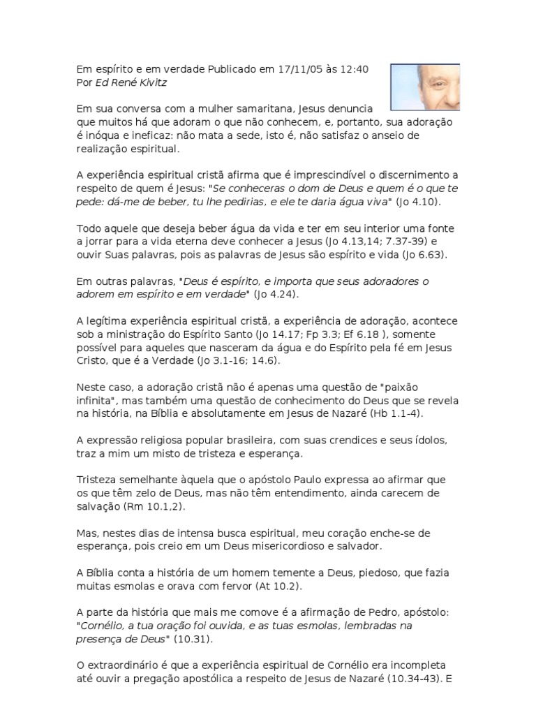 Em espírito e em verdade Publicado em 17/11/05 às 12:40