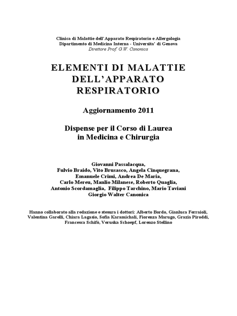 Ribadiamo che questi Elementi di Malattie dellApparato Respiratorio non