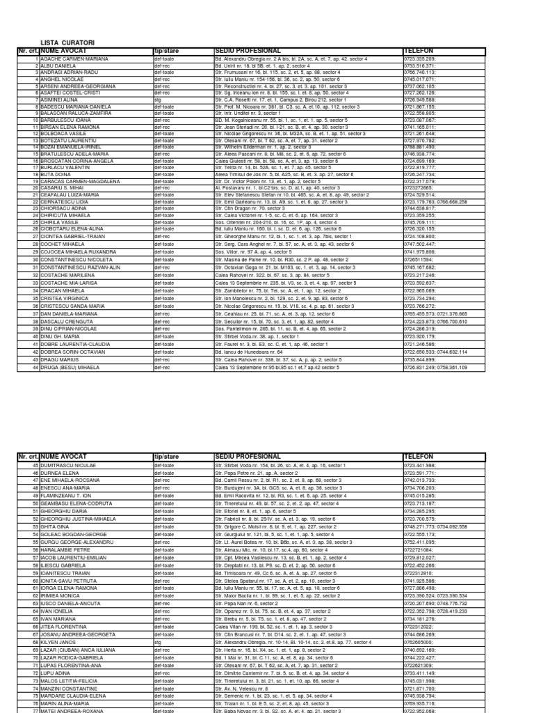 Nr. crt. NUME AVOCAT