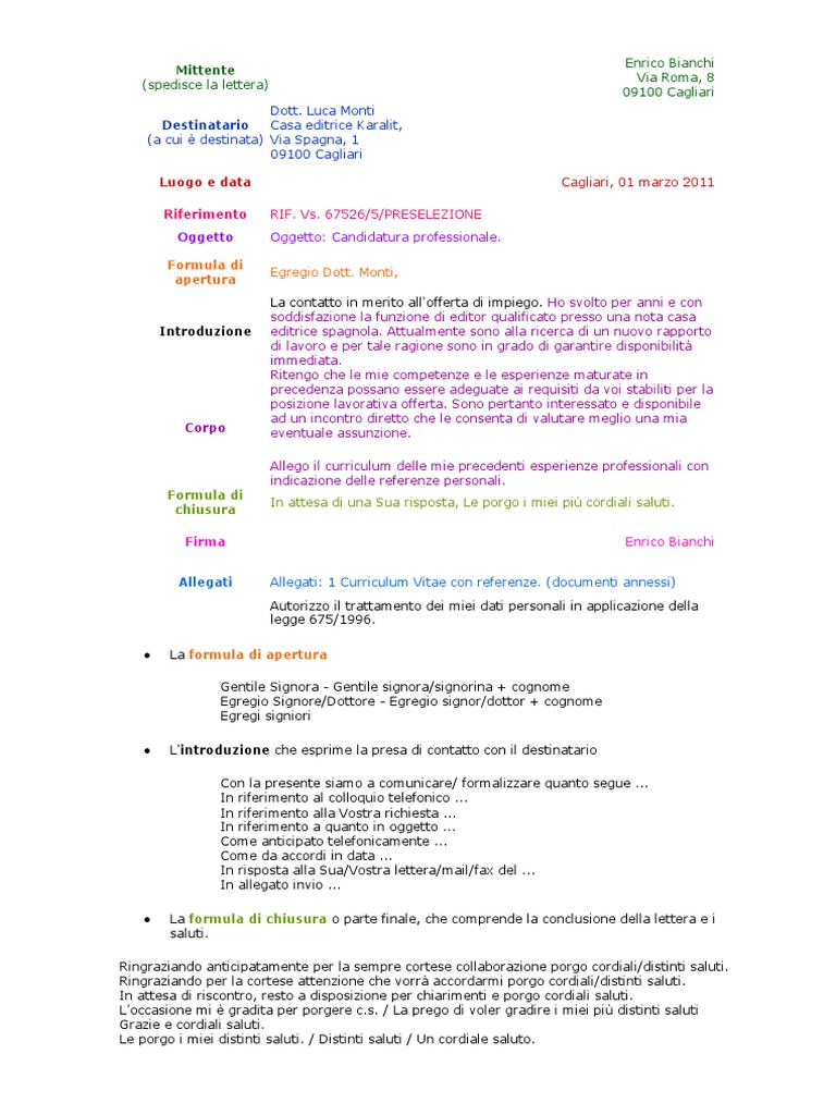 Ringraziando per la cortese attenzione che vorr accordarmi porgo cordiali/distinti saluti.