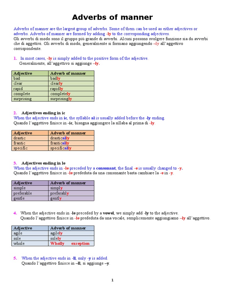 che di aggettivi. Gli avverbi di modo, generalmente si formano aggiungendo –ly all’aggettivo