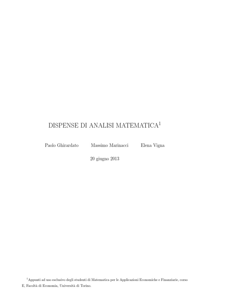 Appunti ad uso esclusivo degli studenti di Matematica per le Applicazioni Economiche e Finanziarie, corso