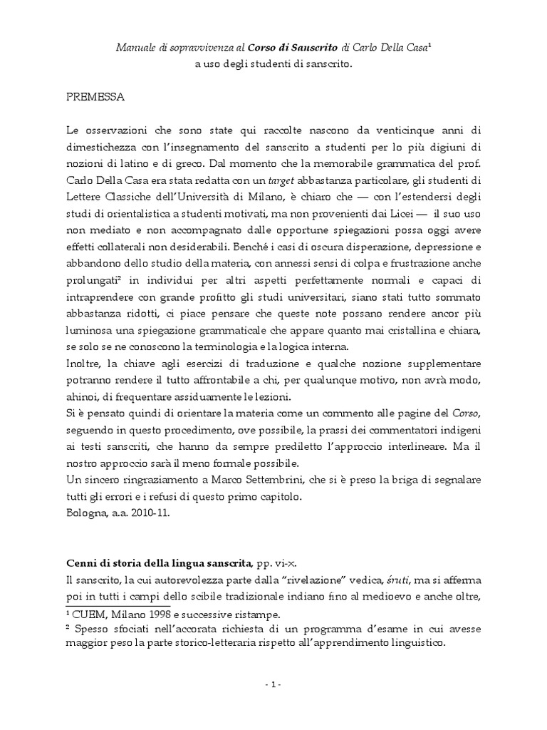 Manuale di sopravvivenza al Corso di Sanscrito di Carlo Della Casa1